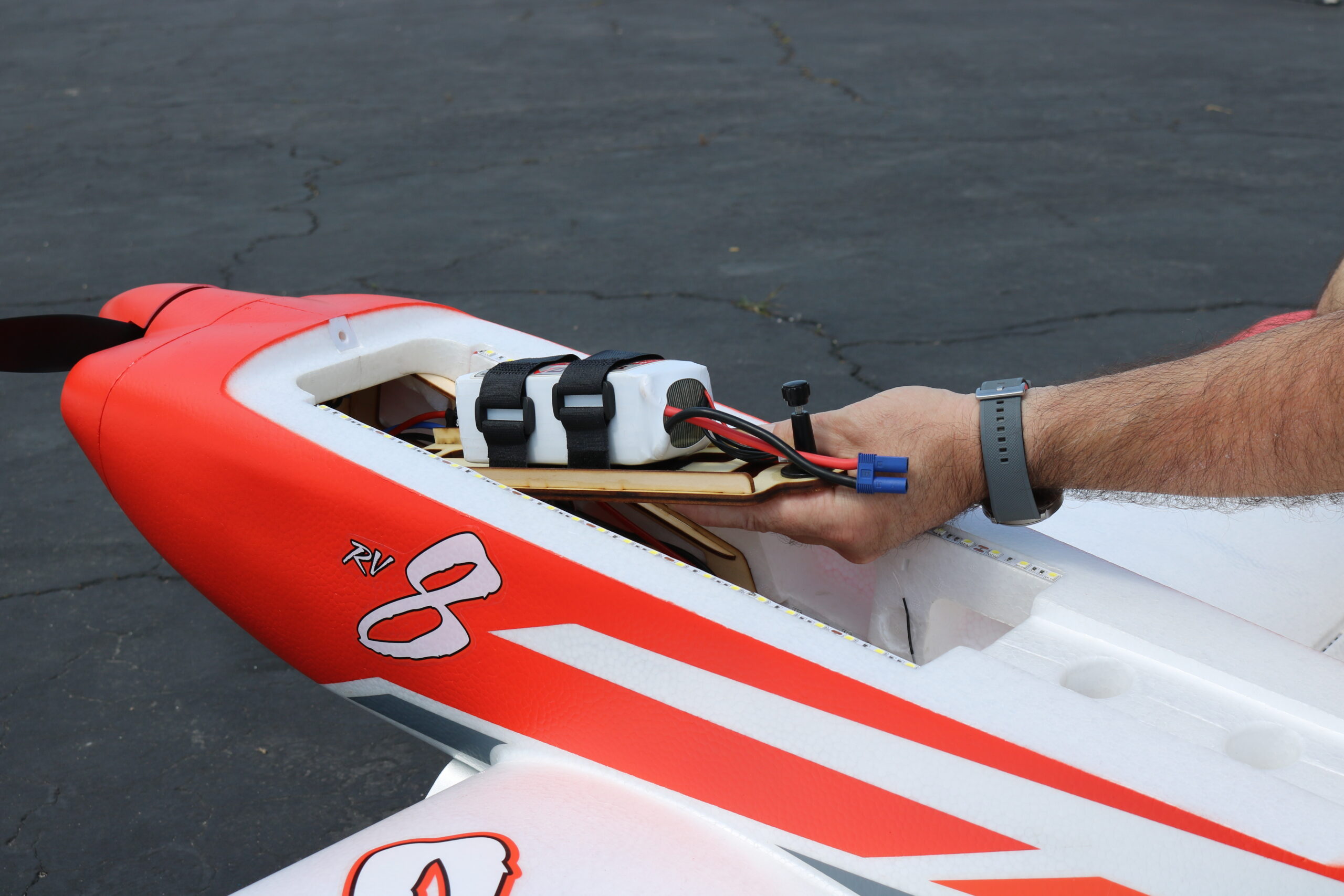 The RV-8 structure is hollow on the inside and has plywood and carbon fiber in key locations. The innovative plywood sub-structure secures the power system to the wing tube and landing gear mount, making the motor run very smooth, even at high power. Because it is EPO foam, it remains TOUGH yet REPAIRABLE.